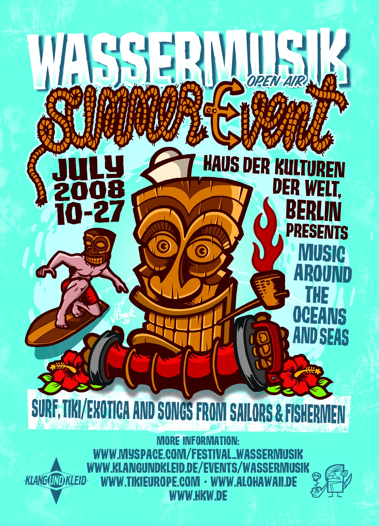 Vom 10. bis 27. Juli 2008 jeweils von Donnerstag bis Sonntag. Ab Juli gibt es ein neues Sommerfestival in Berlin, das Konzerte und Filme mit Reflexionen und Erlebnissen rund ums Wasser verbindet. Die Erstausgabe des Festivals setzt drei musikalische Schwerpunkte: Surf, Tiki, sprich Exotica und Lieder von Seefahrern und Fischern.